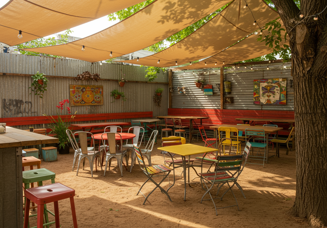 I would have to say the patio is a hidden gem (eclectic is maybe a fun way to describe it). If you were to be walking by on South Lamar, you would not know it was there. The outside bar is open when they host special events and the weekly “open mic night”.